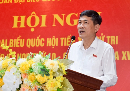 Đại biểu Thái Thanh Quý - Phó Trưởng Ban Thường trực Ban Chính sách, chiến lược Trung ương phát biểu tại hội nghị tiếp xúc cử tri |