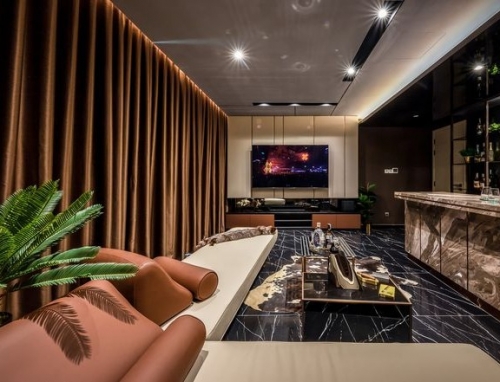Ngoài phòng ngủ chính, tầng ba còn có không gian giải trí. Bạn có thể ngồi đây cùng bạn bè và gia đình xem phim, nhâm nhi vài ly đồ uống, thậm chí là tổ chức tiệc tùng mà không lo làm phiền người ở tầng dưới.
