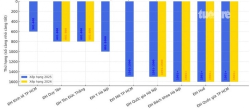 Tuy nhiên, cần lưu ý rằng trong các năm trước, Đại học Duy Tân và Trường đại học Tôn Đức Thắng từng đạt vị trí cao hơn, thuộc nhóm 401-500 trong bảng xếp hạng THE 2023, cho thấy sự thay đổi đáng kể trong kết quả xếp hạng năm 2025.