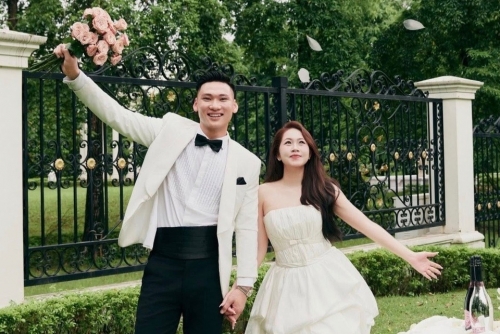Thủ thành Xuân Hoàng và vợ trong bộ ảnh cưới công bố hồi tháng 9. |