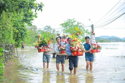Một người khác viết: "Trời mưa gió, lụt lội thế mà bà con vẫn đến chung vui, thật trân quý. Đúng là trong mọi hoàn cảnh, tình người và niềm vui vẫn luôn hiện hữu".