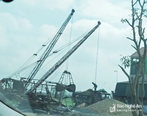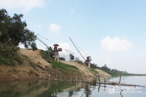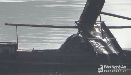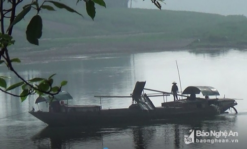 Sáng 23/1/2018, phóng viên Báo Nghệ An tiếp tục ghi nhận được những hình ảnh hút cát trái phép trên sông Lam, đoạn giáp ranh xã Thanh Tiên và Thanh Lĩnh. Ảnh: PV |