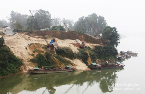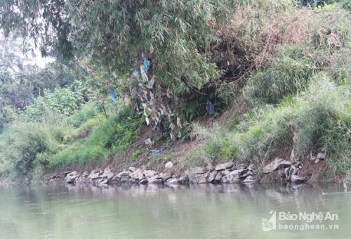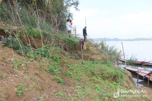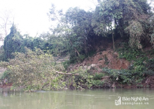 Do nạn "cát tặc" diễn ra nhiều năm nay, bãi bồi bên sông Lam đã bị sạt lở, để lại nhiều hậu quả nghiêm trọng. Ảnh: PV |