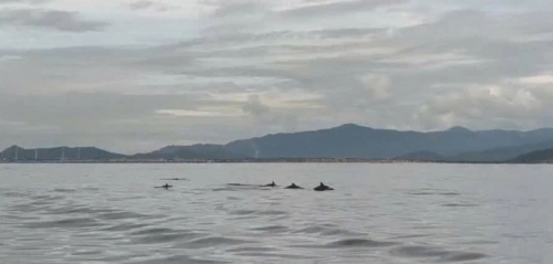 Chia sẻ với Tuổi Trẻ Online, chị Lưu Yến Phi - nhân viên Ban quản lý Khu bảo tồn biển Hòn Cau - cho biết trong lúc tàu chở khách từ đảo vào lại đất liền thì bất ngờ có một đàn cá heo khoảng 20 con bơi ngang.