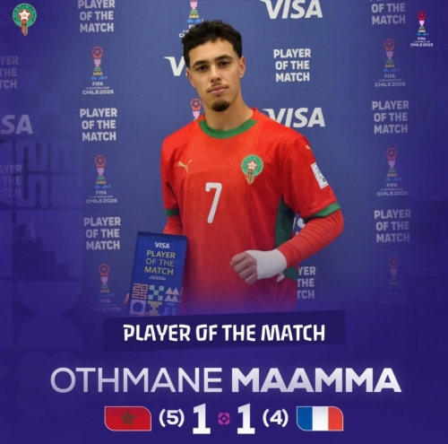 Othmane Maamma giành giải cầu thủ xuất sắc nhất trận bán kết U20 World Cup 2025. (Ảnh: FRMF) |