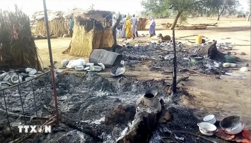 Hiện trường một vụ tấn công do Boko Haram tiến hành nhằm vào đám tang ở gần thủ phủ Maiduguri của bang Borno, Nigeria vào tháng 6/2025. (Ảnh: TTXVN) |