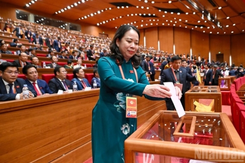Phó chủ tịch nước Võ Thị Ánh Xuân bỏ phiếu bầu Ban Chấp hành Trung ương khóa XIV - Ảnh: Báo Nhân Dân |