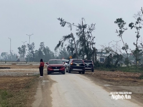 Xe ô tô chở người đi xem đất Vinh Lộc kín cả đường. Ảnh: Báo Nghệ An |