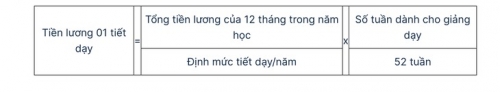 Mức tiền lương của 1 tiết dạy được tính như sau: