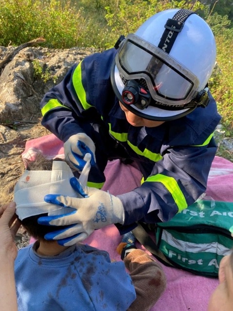 Tại hiện trường, địa hình khu vực núi đá phức tạp khiến việc tiếp cận hố sâu gặp nhiều khó khăn khi xác định chính xác vị trí các nạn nhân. Khi tiếp cận được các nạn nhân, lực lượng cứu nạn tổ chức sơ cứu ban đầu và động viên, ổn định tinh thần 2 cháu bé.