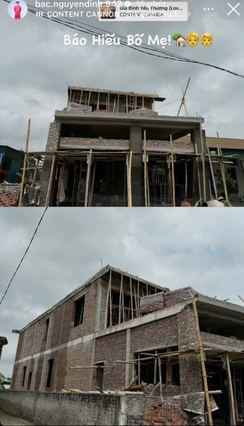 Mới đây, tiền vệ Nguyễn Đình Bắc khiến người hâm mộ chú ý khi chia sẻ khoảnh khắc xây dựng căn nhà mới khang trang để báo hiếu bố mẹ. Qua những bức ảnh được đăng tải, có thể thấy căn nhà đang trong quá trình hoàn thiện với quy mô khá lớn, thiết kế 2 tầng rộng rãi, phần khung bê tông kiên cố và mặt tiền bề thế. Chỉ nhìn qua cũng đủ cảm nhận được độ “hoành tráng” của cơ ngơi mà Đình Bắc dành tặng gia đình sau thời gian thi đấu và tích lũy.