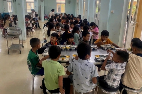 Sau sự việc ngộ độc xảy ra, bếp ăn bán trú của trường đã được tổ chức lại, giao cho tổ kiểm thực quản lý, học sinh đã được ăn uống đầy đủ và an toàn - Ảnh: QUỐC NAM |