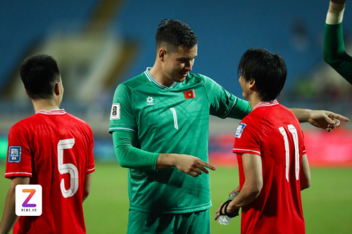 Tối 31/3, đội tuyển Việt Nam đánh bại Malaysia 3-1 ở trận đấu thuộc vòng loại Asian Cup 2027 trên sân Thiên Trường (Ninh Bình). Người gác đền cho đội quân áo đỏ là Nguyễn Filip. Đây là trận đấu không quá căng thẳng với thủ thành mang áo số 1 khi Malaysia chỉ gây một chút sóng gió trước khung gỗ, sau đó bị đẩy lùi sâu về phần sân nhà trong suốt hiệp 1. Ở hiệp 2, từ một tình huống đá phạt penalty của "Hổ Malay", Nguyễn Filip mới phải vòng lưới nhặt bóng. Màn trình diễn tại Thiên Trường có thể xem là lời khẳng định cho vị trí của thủ môn này. Ảnh: Đinh Hà. |