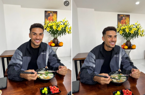 Hoàng Hên tỏ ra yêu thích món phở chay Việt Nam. Ảnh: Hendrio Araujo. |