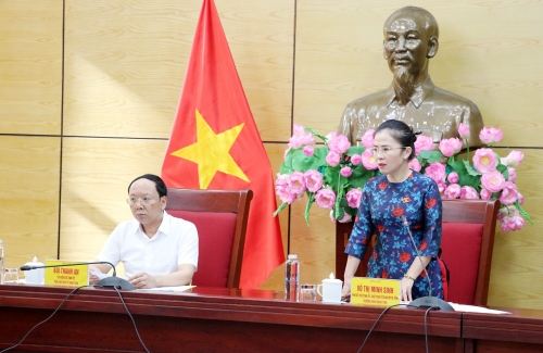 Phó Bí thư Tỉnh ủy, Chủ tịch Ủy ban MTTQ tỉnh, Trưởng Đoàn Đại biểu Quốc hội tỉnh Võ Thị Minh Sinh đặt vấn đề buổi làm việc |