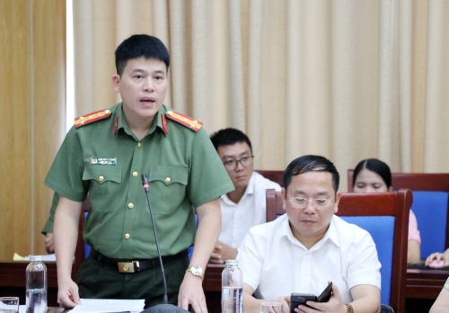Phó Giám đốc Công an tỉnh Trần Hồng Quang báo cáo tình hình an ninh trật tự trên địa bàn |