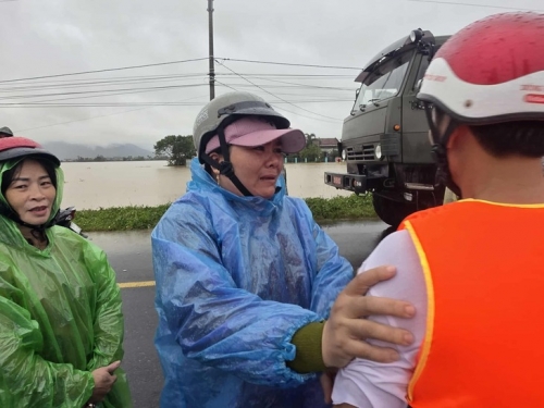 Người dân bật khóc vì lo lắng cho người thân bị kẹt ở vùng ngập - Ảnh: MINH CHIẾN |
