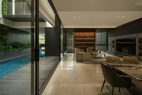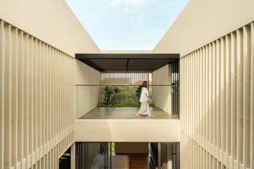 Tọa lạc trong một khu đô thị đông đúc tại Indonesia, căn biệt thự được thiết kế cho một gia đình nhiều thế hệ, với yêu cầu bố trí đầy đủ chức năng, đồng thời đảm bảo riêng tư và thông thoáng. Ảnh: Arte Haus |