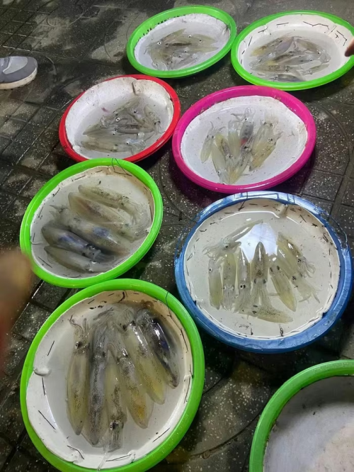 Mực nháy hay mực nhảy không đơn thuần là một món ăn, mà là trải nghiệm về độ tươi hiếm có. Những con mực này vừa được ngư dân câu bằng thuyền thúng ngoài khơi, đưa vào bờ và bán ngay trong đêm. Ảnh Nghệ An News |