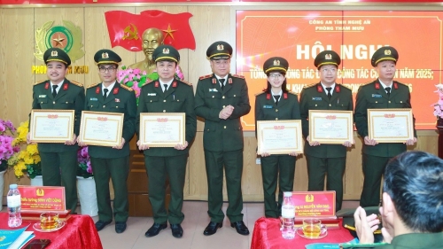 Năm 2025, bám sát sự lãnh đạo, chỉ đạo kịp thời, sâu sát, toàn diện của Ban Thường vụ Đảng ủy, Lãnh đạo Công an tỉnh và sự phối hợp, ủng hộ, giúp đỡ của Công an các đơn vị, địa phương, Phòng Tham mưu hoàn thành xuất sắc chương trình công tác. Nổi bật là, tích cực, chủ động tham mưu hiệu quả chủ trương lớn về bảo đảm an ninh trật tự; hoàn thành đúng tiến độ, chất lượng trọng tâm công tác lớn. Trong năm, đơn vị tham mưu khối lượng văn bản lớn nhất từ trước đến nay với nhiều chủ trương mới, chưa có tiền lệ; được hình thành từ sự tham mưu chủ động, sáng tạo, đổi mới của cán bộ, chiến sỹ. Tập trung nghiên cứu triển khai, đề ra nhiều giải pháp, biện pháp nhằm đổi mới, nâng cao chất lượng tham mưu, tạo điểm nhấn đột phá, đỉnh cao mũi nhọn trên tất cả lĩnh vực công tác. Đặc biệt, đơn vị tham mưu đề ra nhiều biện pháp, giải pháp mới góp phần giữ vững thành tích năm thứ 11 liên tiếp Công an Nghệ An vinh dự được Thủ tướng Chính phủ tặng Cờ thi đua xuất sắc, 10 năm liên tiếp Công an Nghệ An được Bộ Công an xếp thứ Nhất về chỉ số cải cách hành chính trong toàn lực lượng Công an nhân dân…