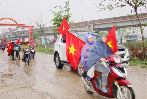 Người dân ra đường đón liệt sỹ Nguyễn Văn Sơn trở về quê hương. |