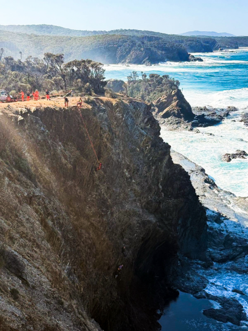 Hiện trường giải cứu nhóm người mắc kẹt trên vách đá ở Eurobodalla, New South Wales ngày 21/4. Ảnh: Facebook/NSW SES |