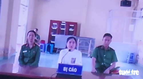 Bị cáo Trần Nguyễn Thu Trang tại phiên tòa xét xử trực tuyến - Ảnh: HOÀI THƯƠNG |