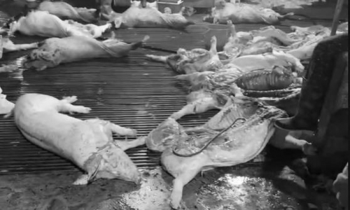 Bên trong cơ sở giết mổ heo bệnh. Ảnh cắt từ clip |
