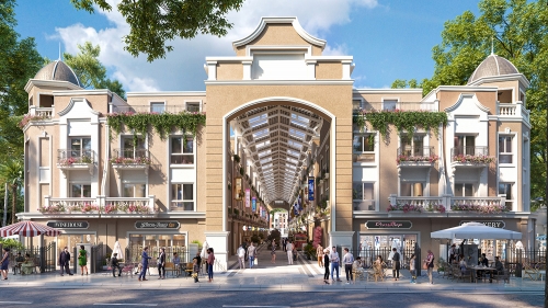 Shophouse hai mặt tiền kết hợp phố đi bộ có mái che là sản phẩm độc đáo chỉ có tại các dự án của Eurowindow Holding. |