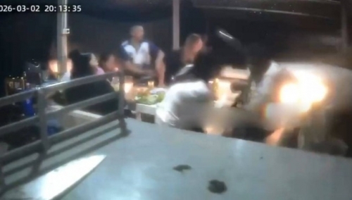 Người chồng được nhìn thấy lái chiếc Toyota màu trắng của mình vòng quanh nhóm người trước khi bất ngờ lao vào quán ăn ngoài trời khi thấy vợ đang uống rượu với người tình.