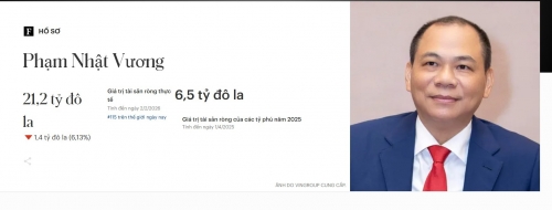 Tính đến ngày 2/2/2026, tổng tài sản của ông Phạm Nhật Vượng là 21, 2 tỷ USD.