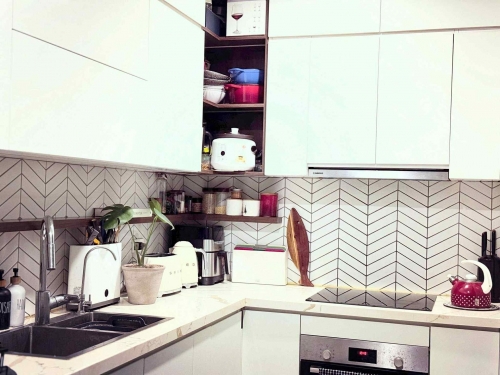 Khu vực bếp được chị Hoài sắp xếp gọn gàng và ấm cúng (Ảnh: Đinh Thu Hoài) |