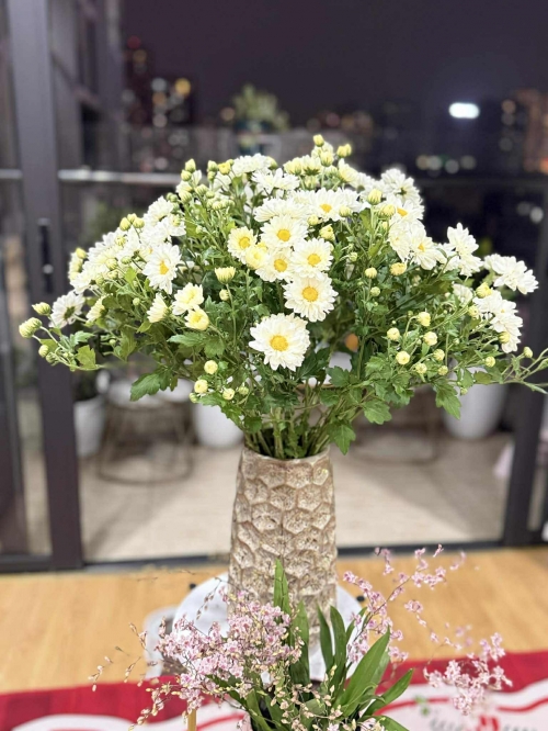 Hoa Tết cũng mang nhiều đổi mới. Nếu như trước đây việc mua mai đào thường được thực hiện sát Tết, thì năm nay nhiều gia đình đặt hàng trước từ rất sớm để chọn được cây đẹp. Nhiều người còn lựa chọn hoa lụa hoặc cây cảnh phong cách Bắc Âu để giữ được độ bền trong suốt cả tháng.