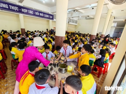 Bữa ăn bán trú ở Trường tiểu học Trưng Vương (Đà Lạt) - Ảnh: M.V. |