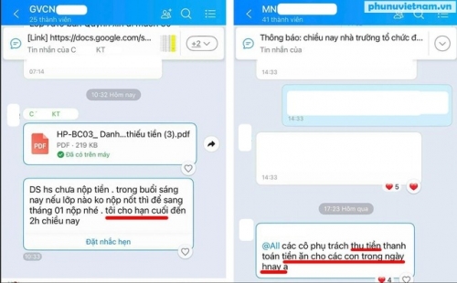 Cô N.T.V., giáo viên THCS tại Bắc Ninh, cho biết một trong những áp lực lớn nhất khi làm công tác chủ nhiệm hiện nay không phải chuyên môn giảng dạy mà là việc "thu tiền". Theo cô V., bộ phận kế toán nhà trường thường xuyên nhắc nhở trong nhóm giáo viên chủ nhiệm, thậm chí nhắn những nội dung mang tính mệnh lệnh như "tôi cho hạn cuối", "nộp về trường ngay". Có thời điểm, tên giáo viên chủ nhiệm còn bị nêu công khai như những người thiếu trách nhiệm chỉ vì chưa thu đủ các khoản theo yêu cầu.