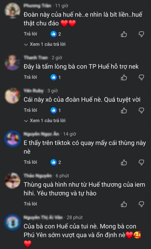 Thời gian này, trên các diễn đàn mạng liên tục chia sẻ hình ảnh những chiếc thùng nhựa được dán kín, cẩn thận vận chuyện từ Huế tới bà con vùng lũ Nam Trung Bộ. Nhiều bài đăng, nhiều bình luận không khỏi cảm động, biết ơn với sự tỉ mỉ rất thiết thực đối với cuộc sống hiện tại của người dân.