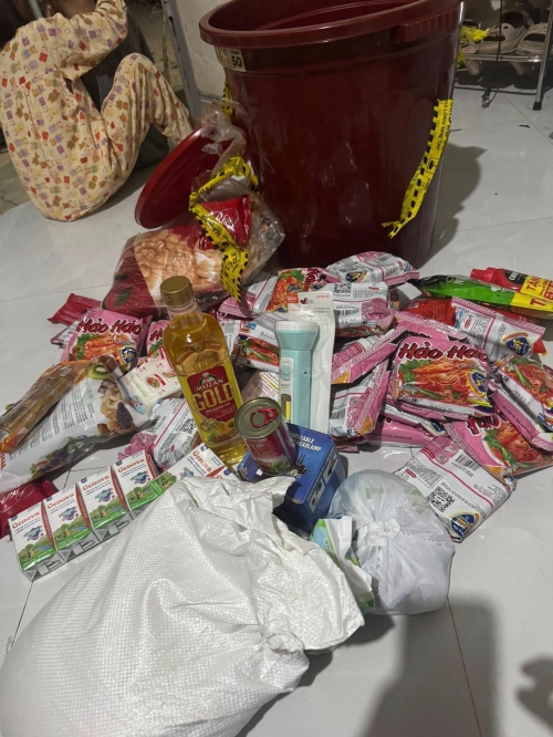 Theo lời anh Hoàng, việc đóng gói các mặt hàng cứu trợ trong chiếc thùng nhựa này được đội thực hiện từ chuyến đi cứu trợ tại tỉnh Nghệ An năm 2022.
