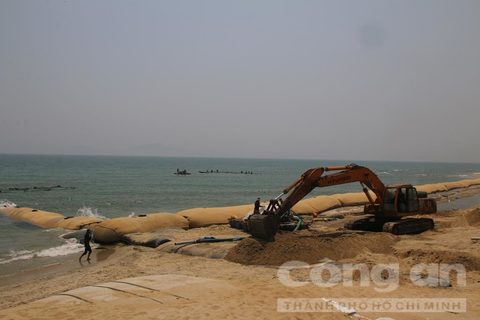 “Nhưng thời điểm này, tình trạng sạt lở nguy cơ trở lại khi việc xói lở ngày càng nghiêm trọng, nhất là việc DA kè thực hiện ngay sát Palm Garden Hội An. Khi DA kè làm mỏ hàn hướng ra biển, bờ được bồi bên này sẽ bị xói lở bên kia. Trước tình trạng cấp bách, phía công ty đã cắt bỏ bao bì của mỏ hàn bên cạnh mỏ hàn của DA kè để tìm giải pháp”, ông Doanh trình bày.