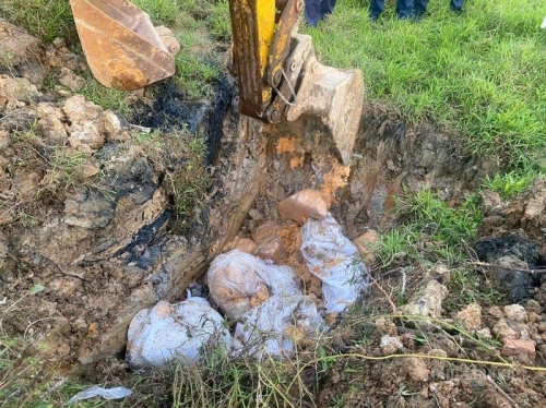 Tiêu hủy số hàng hóa không rõ nguồn gốc. Ảnh: QLTT Hà Tĩnh |