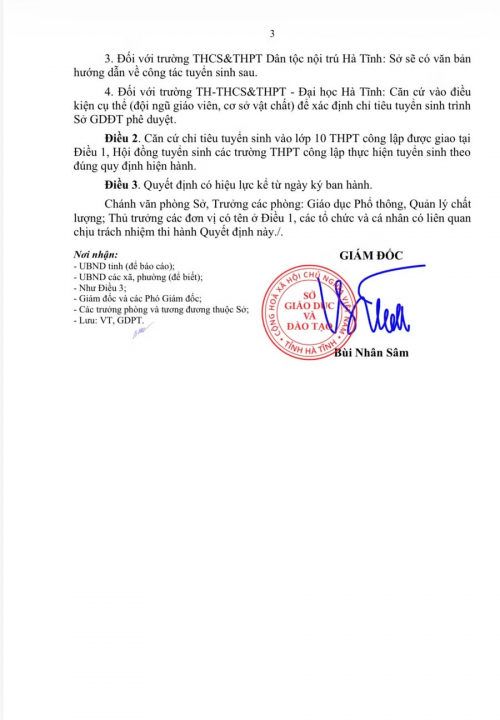 Đối với Trường THCS&THPT Dân tộc nội trú Hà Tĩnh, Sở GD&ĐT sẽ có hướng dẫn tuyển sinh riêng trong thời gian tới. Trong khi đó, Trường TH-THCS&THPT – Đại học Hà Tĩnh được giao chủ động xây dựng chỉ tiêu tuyển sinh phù hợp với điều kiện đội ngũ và cơ sở vật chất, trình Sở phê duyệt.