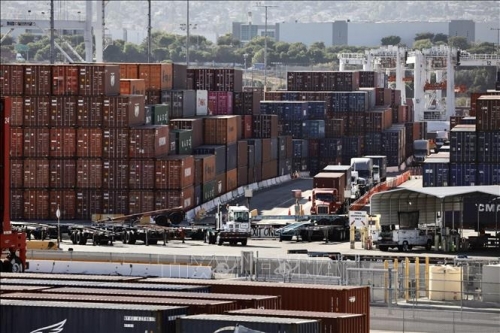Quang cảnh cảng hàng hóa ở Los Angeles, California, Mỹ. Ảnh: THX/TTXVN |