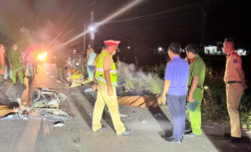 Thời điểm xảy ra tai nạn, xe máy biển số 86K1-9702 do anh Đ.L.Q.K (SN 2004) điều khiển đã tông với xe máy biển số 86F6-4316 do T.N.H (SN 1990) điều khiển, hậu quả hai người điều khiển xe máy tử vong tại chỗ, phương tiện hư hỏng nặng.