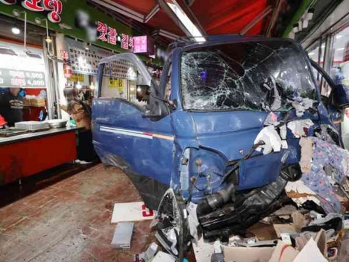 Hiện trường vụ tai nạn xe tải đâm vào một khu chợ truyền thống - Ảnh: YONHAP |