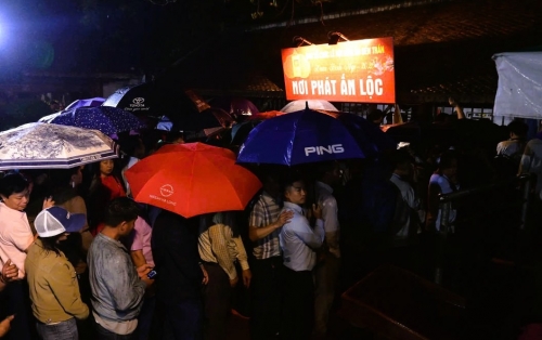 Người dân, du khách "đội mưa" xuyên đêm chờ xin ấn đền Trần |
