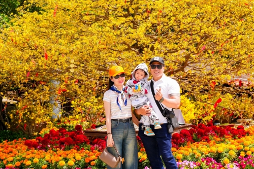 Trải dài toàn khu là cung đường 600 gốc đào - mai đồng loạt nở rộ. Nhiều du khách lớn tuổi cho biết hiếm khi ở TP.HCM có thể cảm nhận trọn vẹn không khí Tết truyền thống Bắc - Nam giao thoa trong một không gian quy mô như vậy.