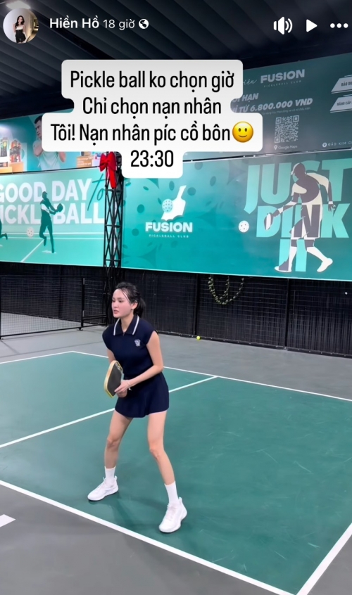 Không chỉ nổi bật trong làng giải trí, ca sĩ Hiền Hồ thời gian qua còn gây chú ý khi thử sức với pickleball, môn thể thao đang ngày càng thu hút giới trẻ tại Việt Nam. Cô chia sẻ vẫn còn mải mê chơi pickleball vào lúc gần 12 giờ đêm như sau: "Pickleball không chọn giờ, chỉ chọn nạn nhân. Tôi, nạn nhân pickleball".