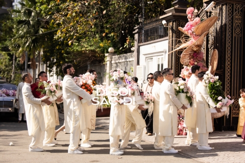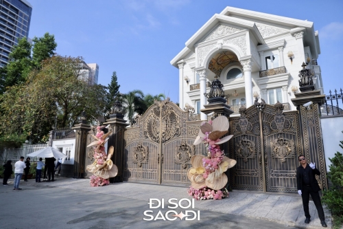 Ngay từ sáng sớm, khu vực bên ngoài biệt thự đã nhộn nhịp với sự xuất hiện của họ hàng, bạn bè thân thiết, dàn vệ sĩ bảo vệ nghiêm ngặt và ê-kíp hậu cần.