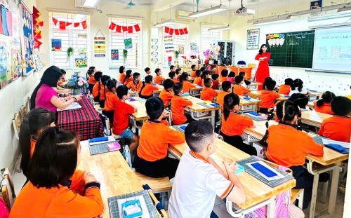 Một tiết học trong hội thi Giáo viên giỏi cấp trường khối tại Trường Tiểu học Trung Văn (Hà Nội). Ảnh minh họa |