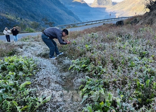 Đặc biệt, tại các xã Lũng Cú, Đồng Văn, Sơn Vĩ, Sính Lủng… băng giá và sương muối xuất hiện dày, phủ trắng trên mái nhà, đường đi và cây cối.