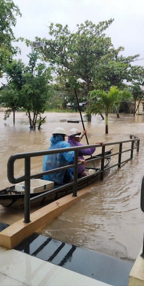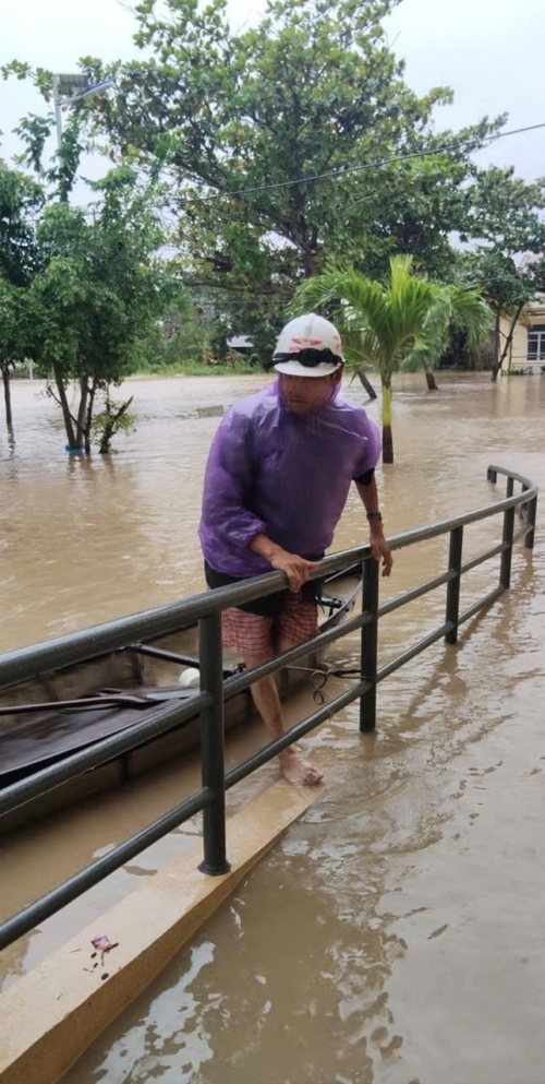 Bố Yến Nhi dùng thuyền đưa người nhà và một số người lân cận đi di tán đến nơi an toàn |